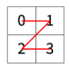 한수는 크기가 2N × 2N인 2차원 배열을 Z모양으로 탐색하려고 한다. 예를 들어, 2×2배열을 왼쪽 위칸, 오른쪽 위칸, 왼쪽 아래칸, 오른쪽 아래칸 순서대로 방문하면 Z모양이다. 만약, N > 1이 라서