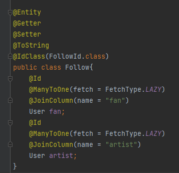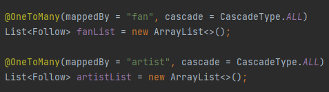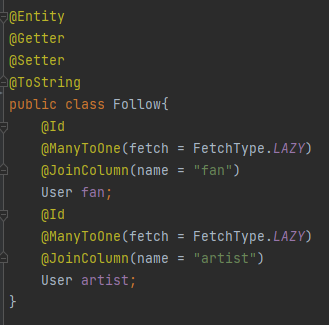 User 클래스에서 작성한 mappedBy의 이름과 Follow의 변수명, FollowId의 변수명
