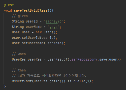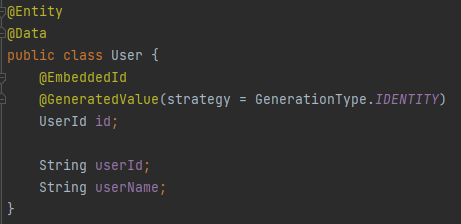 우선 Primary Key를 위한 UserId 클래스를 생성합니다.