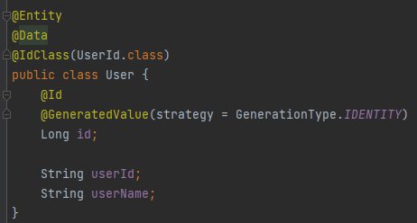 클래스선언 위에 @IdClass를 사용해줍니다.