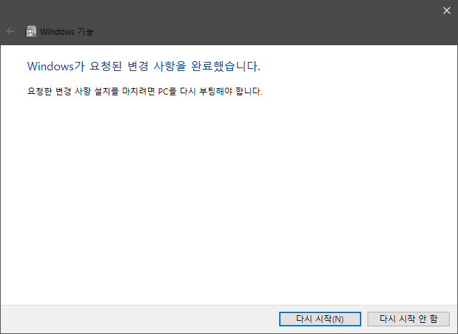 Linux용 Windows 하위 시스템을 체크하고 확인을 누릅니다.