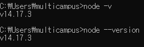 cmd에 node -v나 node --version을 쳐서 버전이 나오면 설치가 된겁니다.