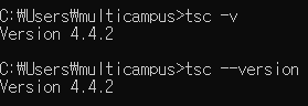 설치 이후에 tsc -v나 tsc --version을 쳐서 버전이 나오면 설치가 된겁니다.