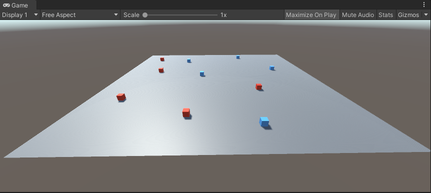 구별을 위해 Group1에는 파란색, Group2에는 빨간색 Material을 넣었습니다.