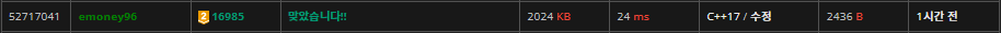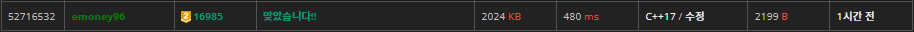 하지만 다른 분들의 실행 시간을 보니 제 코드가 비효율적으로 동작한다는 것을 깨달았고, 가지치기를 진행하였습니다.