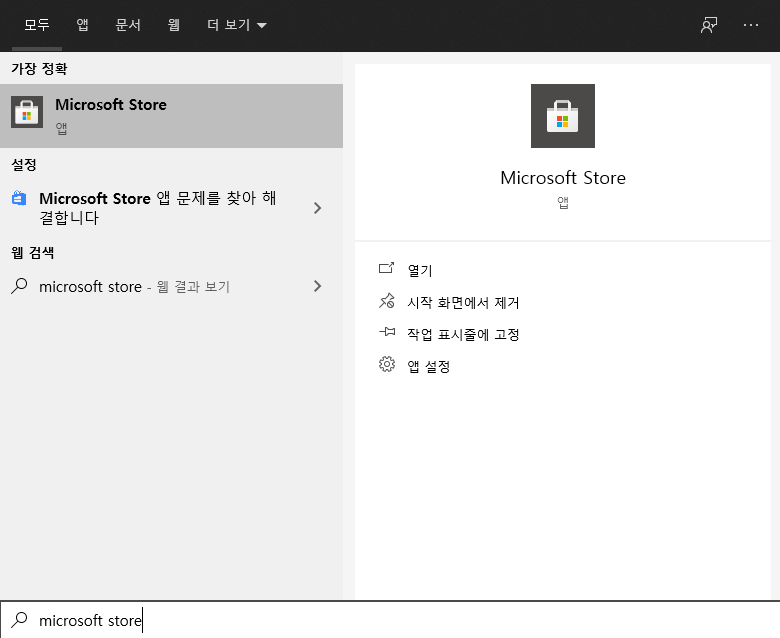 그 다음 Microsoft Store 앱을 켜줍니다.