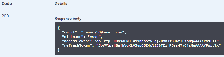 이제 토큰 정보를 받았으니 토큰을 이용하여 유저 정보를 요청합니다.