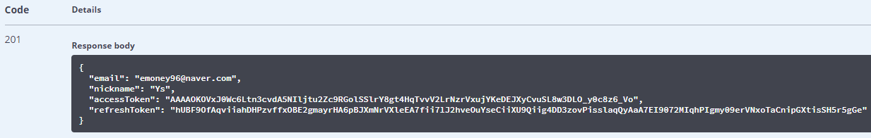 분명 신규회원, 기존회원이라는 차이가 있지만 accessToken, refreshToken은 동일합니다.