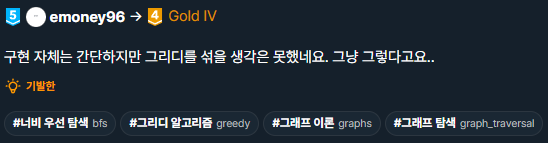 난이도 기여하러 갔더니 다들 쉽다는 반응은 아니었는데 골드5를 주셨더라고요..??