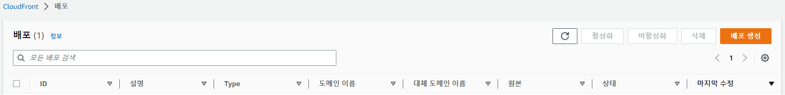 그러면 이제 위 링크를 이용하여 CloudFront 페이지로 넘어갑니다.